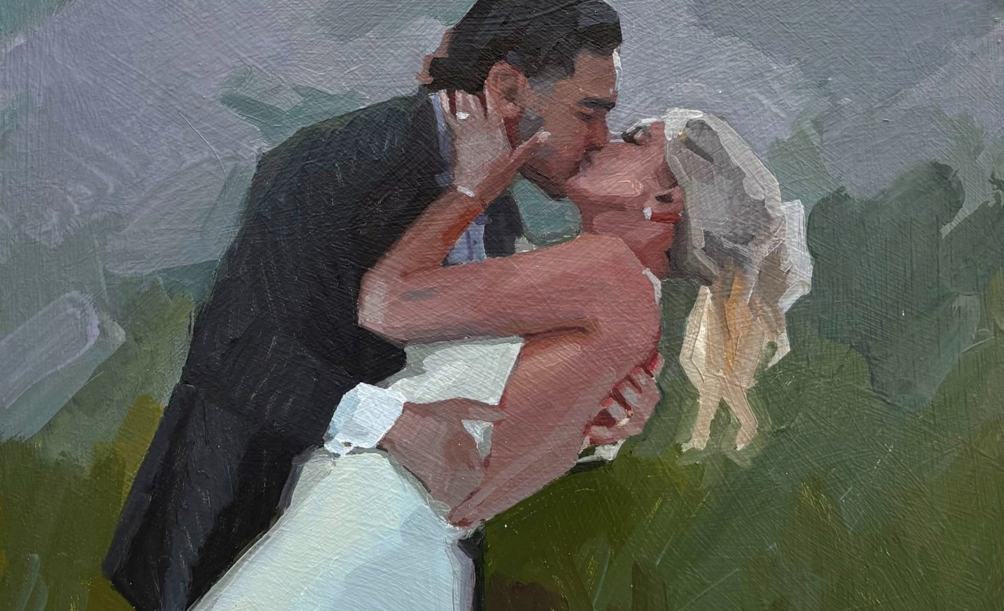 On your wedding day, I capture your desired moment in photographs and paint throughout the reception, creating a piece infused with the beauty and emotion of the day. Within two weeks, the painting is finished and delivered- elegantly finished, professionally varnished, optionally framed, and ready to adorn your space.